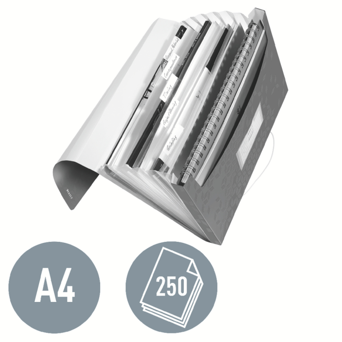 Aktovka z polypropylénu na ukladanie a prenos dokumentov do formátu A4. V dizajne WOW v žiarivých farbách. Atraktívne uzatváranie na gumičku, šesť roztiahnuteľných priehradok s indexami na popis obsahu, jedna priehradka na voľne vložené listy do formátu A4, vrecko na vizitky. Kapacita 250 listov. Väčšie balenie 5 ks. Farba červená.