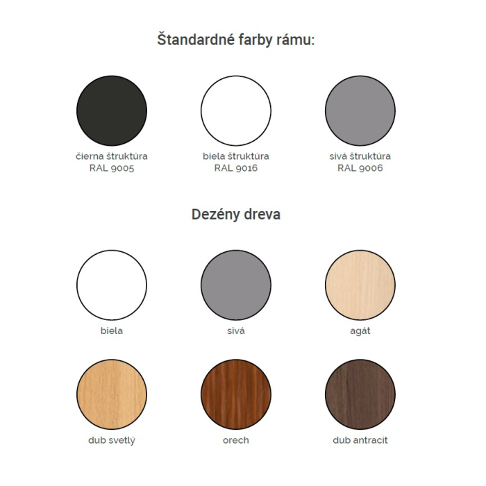 • farebné prevedenie panelu a stola: biela, sivá, agát, dub svetlý, orech, dub antracit