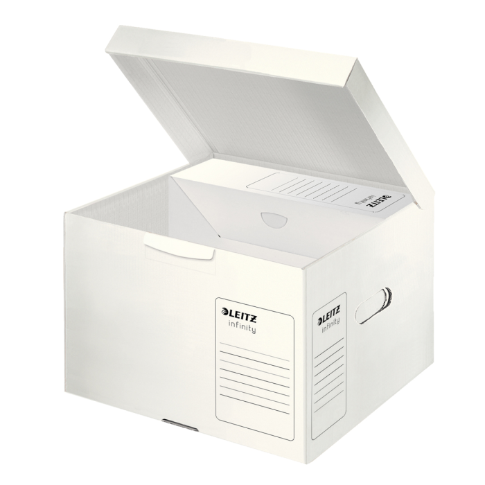Špeciálny archivačný systém Leitz Infinity splňuje všetky kritériá a požiadavky medzinárodnej normy ISO 16245 pre dlhodobú a náročnú archiváciu dokumentov. Je vyrobený z novo vyvinutej lepenky, ktorá je 100% acid free (alkalická).Odporúčané pre náročnú a dlhodobú archiváciu dokumentov v národných archívoch, múzeách, knižniciach aj v súkromných organizáciách