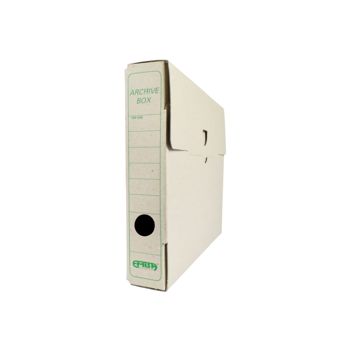 Ekologický výrobok. Box z recyklovateľnej špeciálne impregnovanej lepenky odolnej voči atmosferickej vlhkosti na dlhodobé uloženie záznamov. Tri varianty postavenia, kvalitná sieťotlač. Vhodný v kombinácii so skupinovým boxom. Väčšie balenie 25 ks. Rozmery (š x v x d) 50 x 330 x 260 mm.