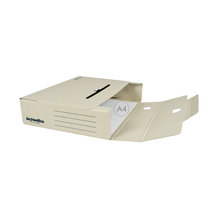 Systém archívnych boxov a škatúľ z vlnitej lepenky. Dodávané v rozloženom stave. Farba prírodná hnedá. Archívny box z hladkej ručnej lepenky, 1 000 g/ m². Konštrukčné riešenie boxu umožňuje rýchly prístup k vloženým dokumentom. Rozmery