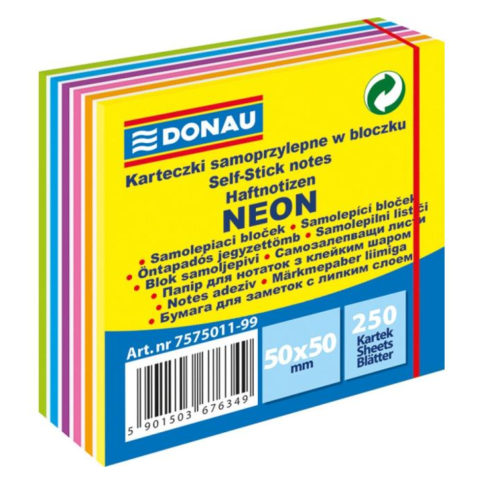 Bloček DONAU 50 × 50 mm, mix neónových farieb, 250 lístkov