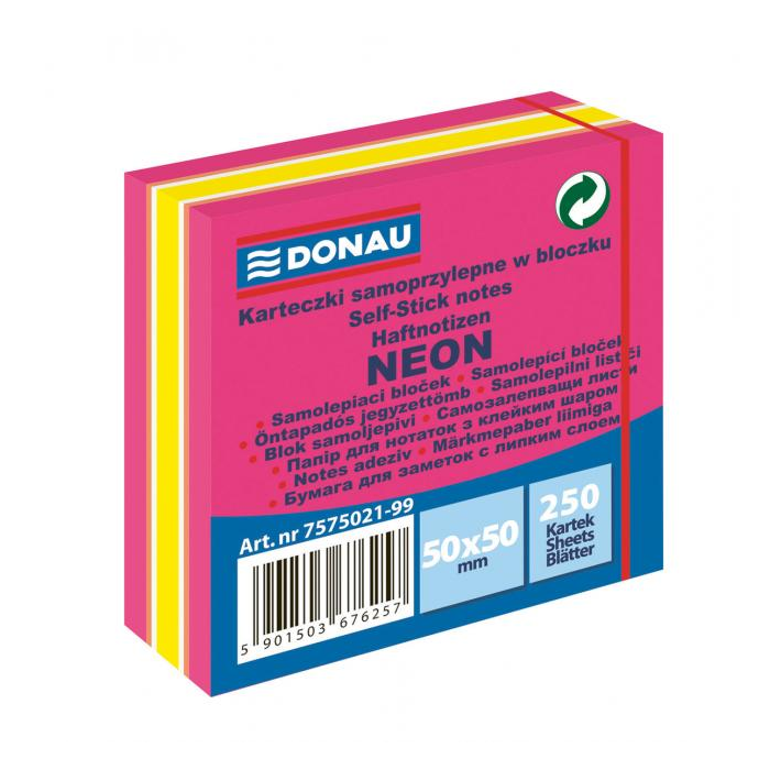Bloček Donau neónový 50 x 50 mm, mix neónových farieb, 250 lístkov