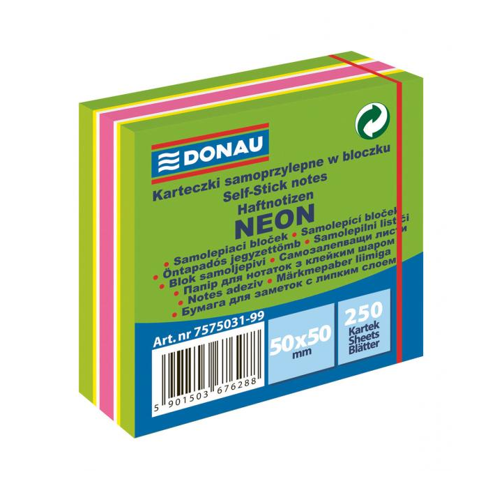 Bloček Donau neónový 50 x 50 mm, mix neónových farieb, 250 lístkov
