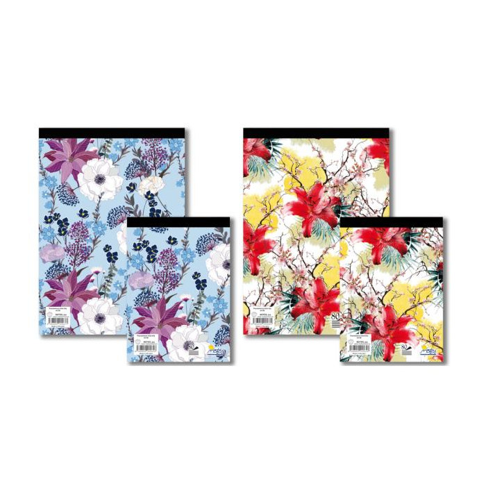Bloky formátu A5 z bezdrevného papiera 60 g/m2 s farebnou atraktívnou prednou stranou, listy šité, perforované. Väčšie balenie 10 ks. Úprava: linajková Počet listov: 80