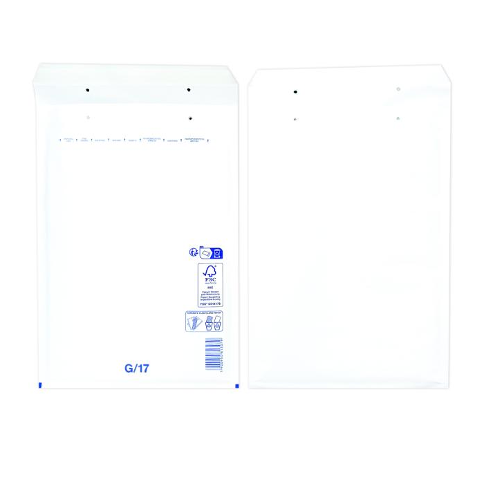 Extrémne ľahké, bezpečné a hospodárne obálky. Jednoduchý spôsob balenia samolepiacim uzáverom. Vďaka špeciálnej fólii s vankúšikmi, plnenými vzduchom a papieru Kraft, potiahnutému polyetylénom, sú obálky elastické a odolné voči roztrhnutiu a vode. Farba biela. Vnútorný rozmer 24 x 34 cm.