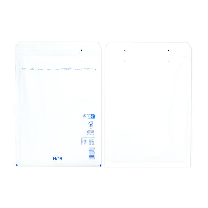 Extrémne ľahké, bezpečné a hospodárne obálky. Jednoduchý spôsob balenia samolepiacim uzáverom. Vďaka špeciálnej fólii s vankúšikmi, plnenými vzduchom a papieru Kraft, potiahnutému polyetylénom, sú obálky elastické a odolné voči roztrhnutiu a vode. Farba biela. Vnútorný rozmer 27 x 36 cm.