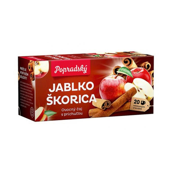 Aromatizovaný ovocný čaj s príchuťou Jablko a škorica. Porciovaný v nálevových vreckách.