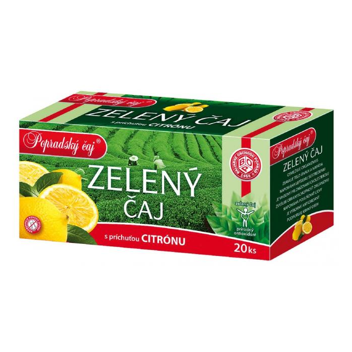 Zelený čaj s príchuťou citrónu, balenie 20 × 1,5 g.