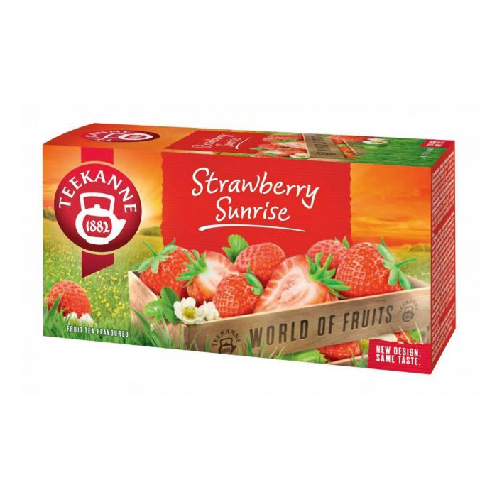 Ovocno-bylinný čaj aromatizovaný, s príchuťou jahôd.