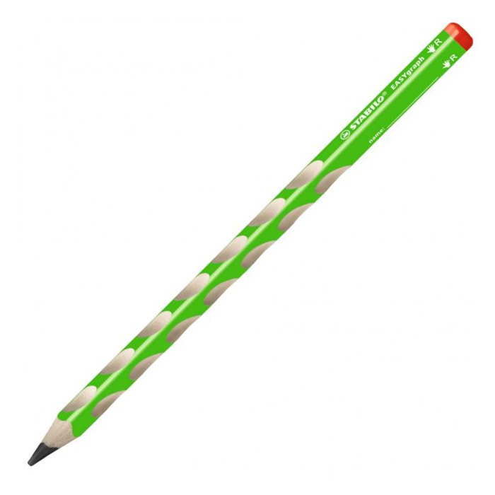 Prvá ergonomicky tvarovaná grafitová ceruzka vyrobená osobitne pre pravákov. Trojhranný dizajn, protišmykové plochy pre uvolnené držanie. Priemer tuhy 3,15 mm, tvrdosť HB vhodná pre písanie i skicovanie. Balenie 12 ks. Farba zelená.