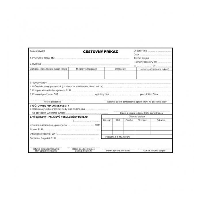 Cestovný príkaz, A5, blok, 100 listov