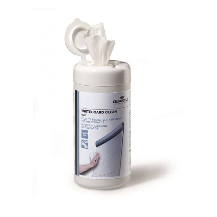 Čistiaci prostriedok na čistenie a obnovu bielych a plánovacích tabúľ. Odstraňuje mastnotu, nečistotu a fľaky po použití za sucha stierateľných popisovačov. Bez obsahu alkoholu. Dóza s impregnovanými papierovými utierkami pre rýchle a ľahké čistenie.