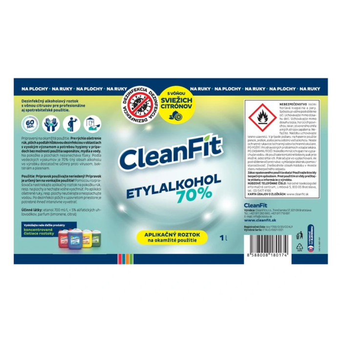 etanol 700 ml/l, < 5% alifatických uhľovodíkov, parfum