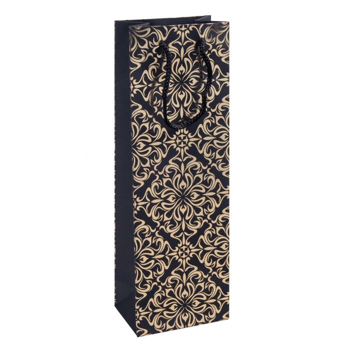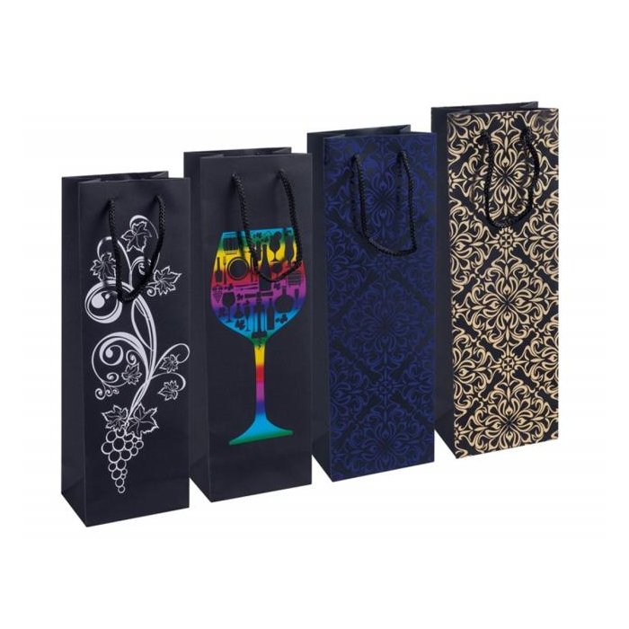 Pevná taška na fľašu DONAU HOME: - skvelá na balenie darčeka vo fľaške - vďaka laminovanému povrchu sa vyznačuje väčšou odolnosťou voči poškodeniu a dlhodobo si zachováva elegantný vzhľad - vyrobená zo 180 g/m² papiera - pevná šnúrková rukoväť z polypropylénu zaisťuje pohodlné nosenie - má vystužené dno - rozmery: 12x35,5x8 cm - farba: mix motívov