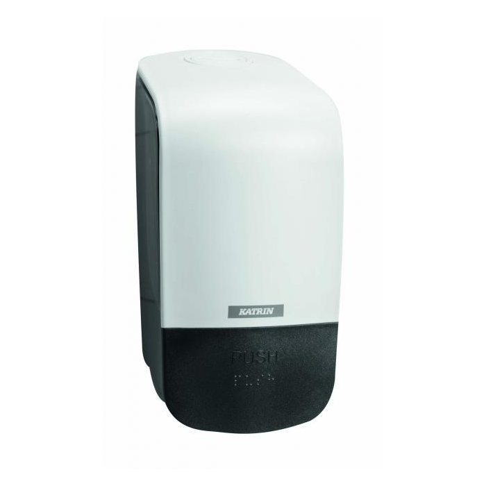Dávkovač tekutého mydla alebo mydla v pene s objemom 500 mℓ z odolného vysokokvalitného ABS plastu. Môže byť používaný s kľúčom alebo bez neho. Vhodný na tekuté mydlo KATRIN 500 mℓ alebo mydlo v pene KATRIN 500 mℓ. S pokynmi v Braillovom písme pre zrakovo postihnutých.