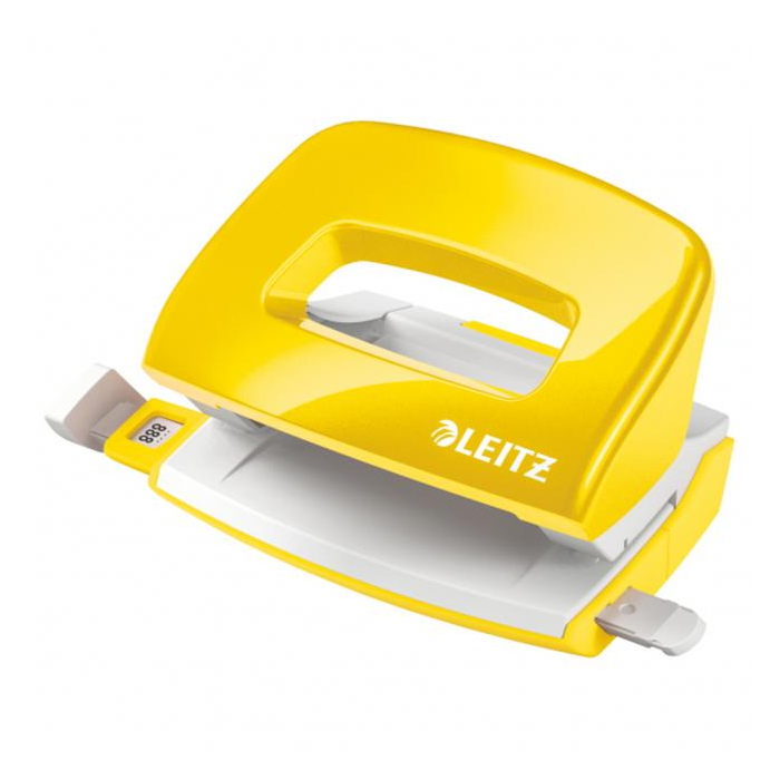 Odolná, praktická zošívačka s ergonomickou rukoväťou a v módnych farbách na použitie v kancelárii, doma alebo na cestách. Patentovaná príchytka a ostré dierovacie segmenty znižujú silu nutnú na dierovanie. Vhodná na použitie v ruke. Farba žltá.