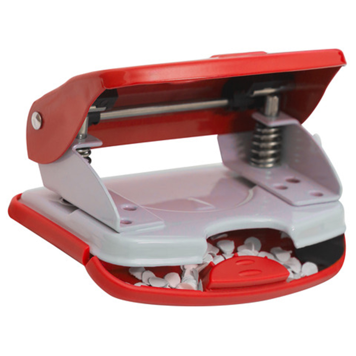 Pevná dierovačka s posuvným pravítkom. Prevedenie plast, mechanika kovová, ergonomický dizajn. Rozpätie dier 8 cm. Kapacita dierovania 20 listov. Farba červená/sivá
