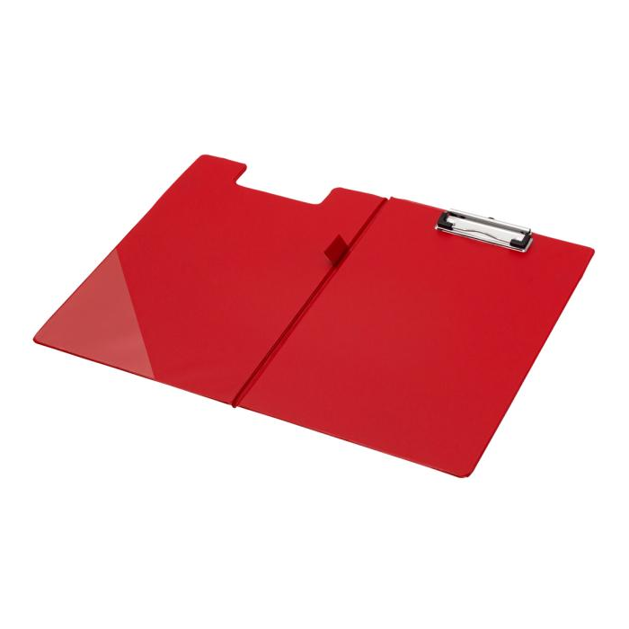 Roztvárateľné dosky vyrobené zo silnej lepenky šírky cca 2mm potiahnutej PVC fóliou. Vhodné na dokumenty formátu A4. Na vnútornej strane ďalšie priehľadné vrecko na dokumenty a držiak na pero alebo ceruzku. Rozmer: 230x350mm.Kapacita 50 listov. Väčšie balenie 12 ks. Farba červená.