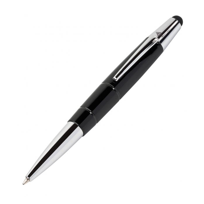 Guľôčkové pero s dotykovým zakončením v jednom, vhodné pre všetky malé telefóny, tablety, aj Apple iPhony a iPady. Ideálny spoločník na presnú navigáciu u všetkých typov dotykových obrazoviek. Jemný gumený hrot plne funkčný aj pri potiahnutí obrazovky ochrannou antireflexnou fóliou. Guľôčkové pero s klipom a veľkokapacitnou náplňou modrej farby (systém Parker). Vysokolesklé prevedenie doplnené chrómovými doplnkami..