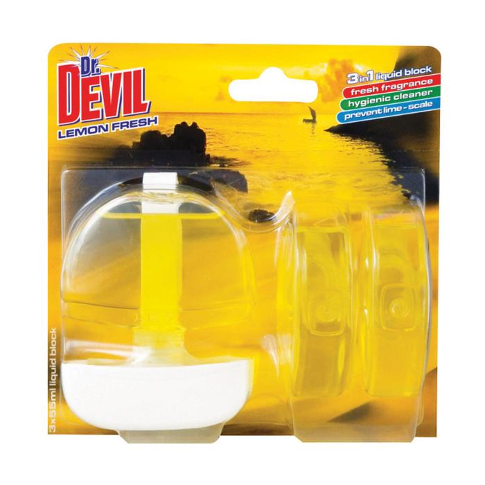 Dr. Devil WC blok Lemon Fresh 3v1 - vonia, čistí a preventivne pôsobí proti usadzovaniu vodného kameňa.