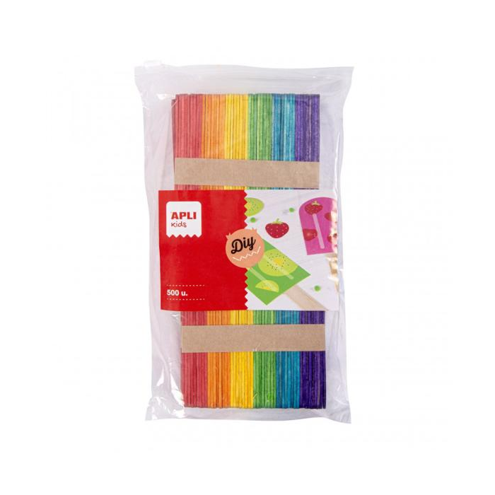 Drevené tyčinky, rozmer 114 x 10 mm, v rôznych farbách: červená, oranžová, zelená, žltá, modrá a fialová. Každé vrecko obsahuje 500 drevených tyčiniek. MAXI formát, ideálne pre školy a skupiny. Veľmi odolné, ľahko sa lepia, maľujú a dokonca aj strihávajú. Základný produkt pre školy a detské dielne, ideálny na vytváranie dekorácií, stavebných konštrukcií, bábok, modelov alebo na použitie v iných ručných prácach. Ideálne na stimuláciu detskej fantázie a kreativity.