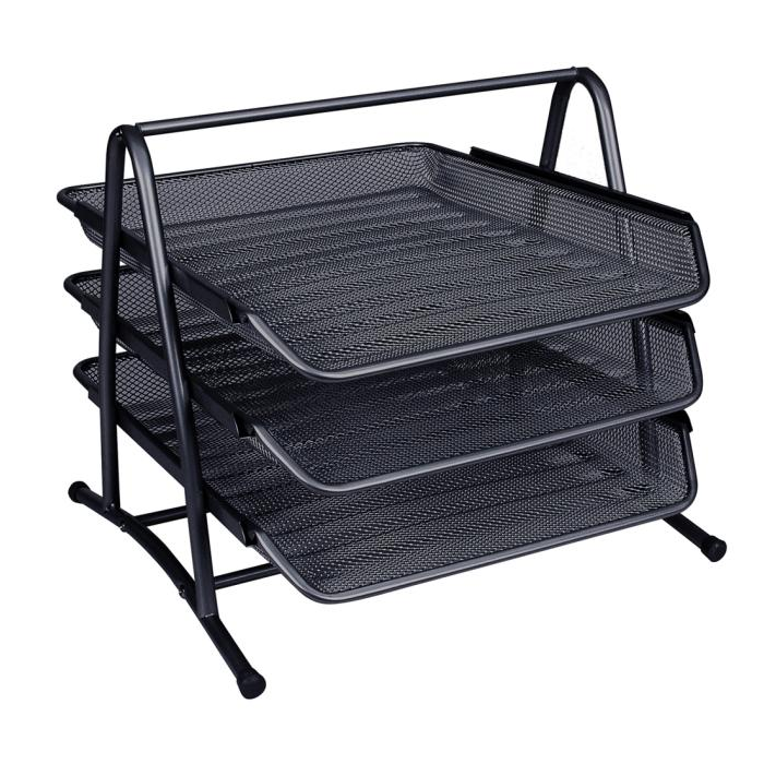 Stojan s 3 odkladačmi na dokumenty do formátu A4+ v drôtenej úprave. Stohovanie kolmo nad sebou. Rozmery 350 × 275 × 278 mm. Farba čierna.
