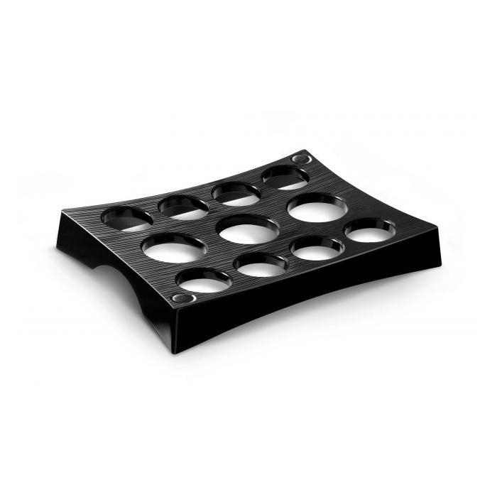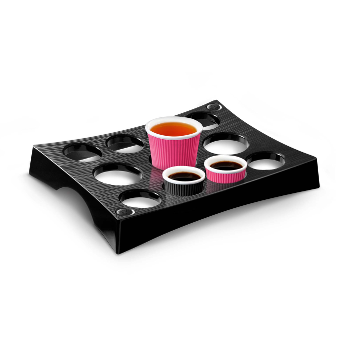 Pohodlný a efektívny držiak na prenos teplých nápojov do zasadacej miestnosti bez rizika rozliatia alebo popálenia. Pojme až 11 šálok, 3 veľké otvory na priemer šálky 65 mm a 8 menších na priemer šálky 53 mm. Navrhnutý tak, aby sa zmestil do šuplíka. Použiteľný samostatne alebo s podnosom. Farba kovová sivá.