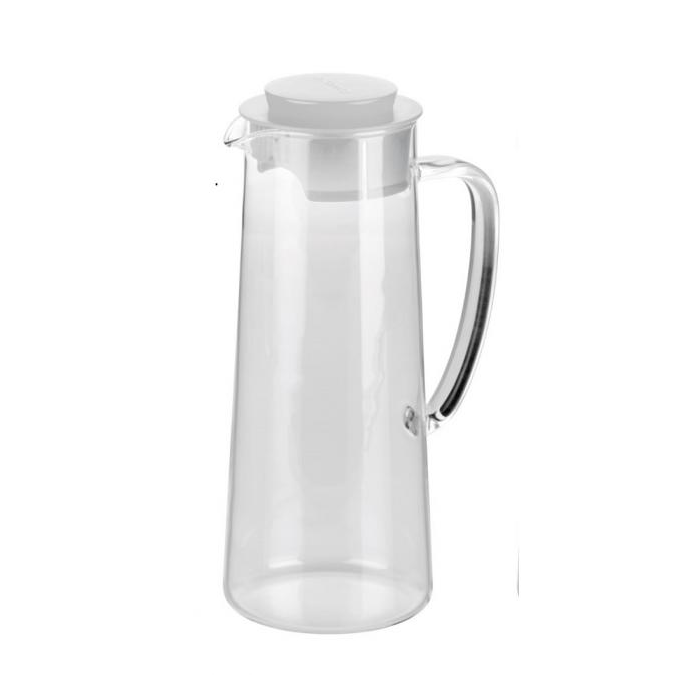 Džbán vynikajúci pre uloženie nápoja do dvier chladničky a jeho priame podávanie a priamy ohrev. Vyrobený z ohňovzdorného skla, vrchnák z odolného plastu. Vhodný do umývačky.Objem 1 liter. Farba biela.