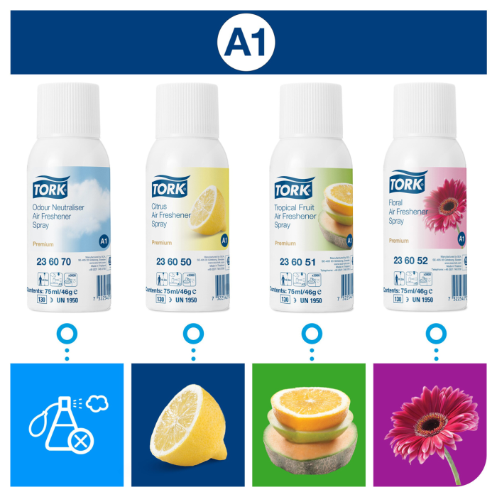Osviežovač TORK Elevation. TORK zásobník na osviežovač vzduchu má výnimočné funkcie v každom detaile, vysoké praktické využitie a jednoducho sa udržiava. Flexibilné umiestnenie pre rôzne typy toaliet a umyvární. Náplne s rôznymi
