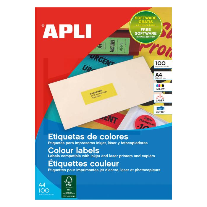 Univerzálne farebné etikety vhodné pre atramentové a laserové tlačiarne a kopírky.