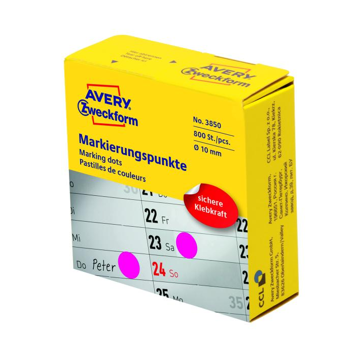 Etikety kruhové 10mm Avery purpurové v dispenzore
