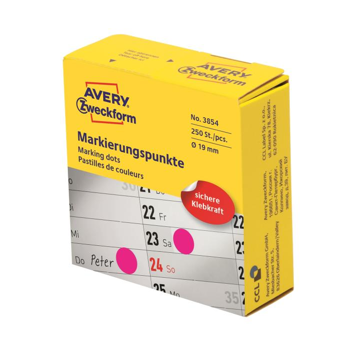 Etikety kruhové 19mm Avery purpurové v dispenzore