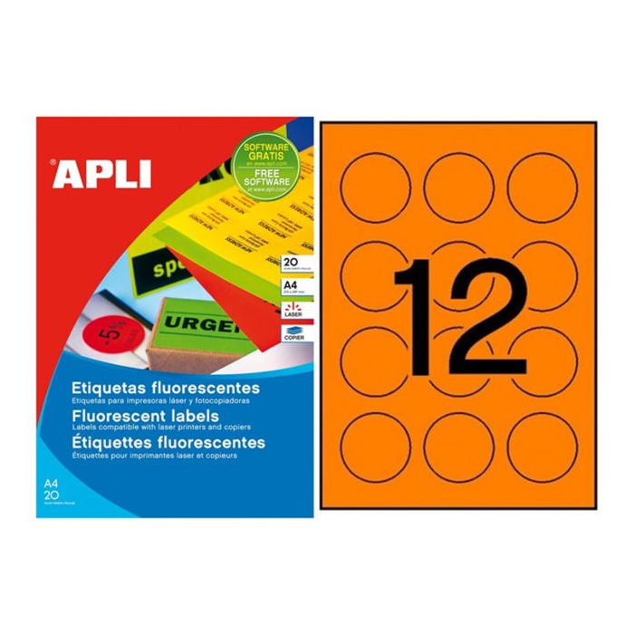 Etikety kruhové farebné priemer 60 mm APLI A4 20 hárkov fluo oranžové