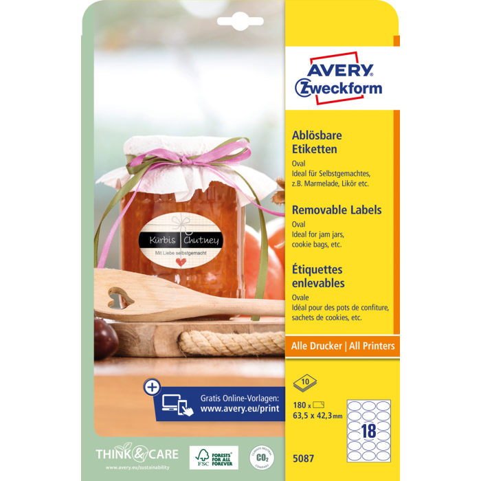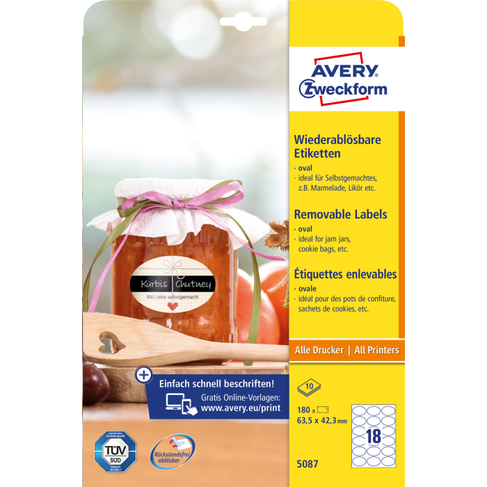 od konkurencie. Spoľahlivá priľnavosť ku sklu, fólii aj papieru. Ľahké odlepenie etikiet bez zanechania stôp po lepidle. Vhodné pre všetky druhy tlačiarní. Šablóny a softvér pre tlač etikiet zadarmo - výber z prázdnych či už navrhnutých, moderných