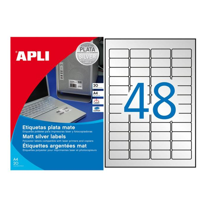 Etikety polyesterové 45,7x21,2mm APLI A4 20 hárkov strieborné
