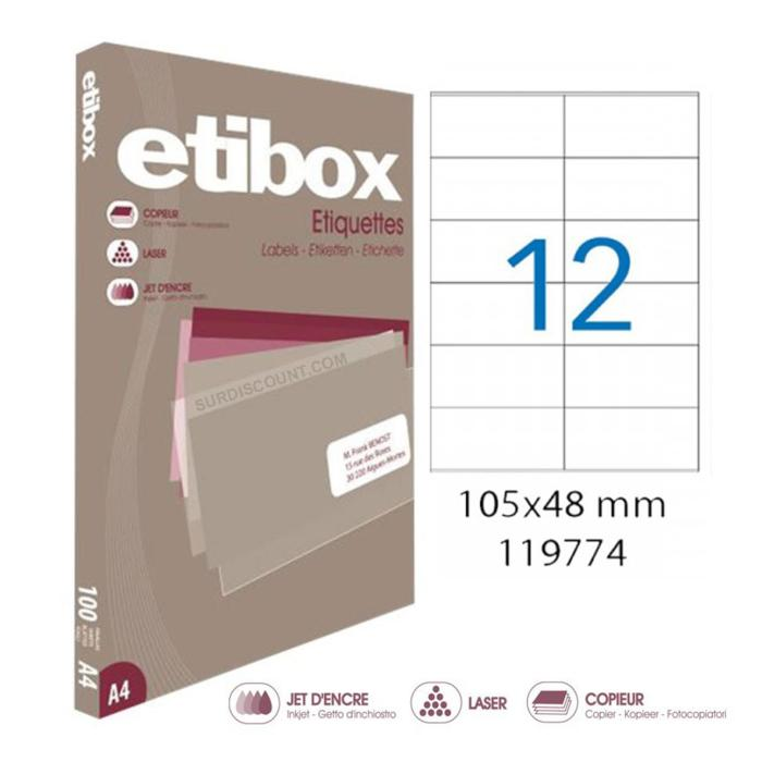 Etikety univerzálne 105x48mm Etibox A4 100 hárkov