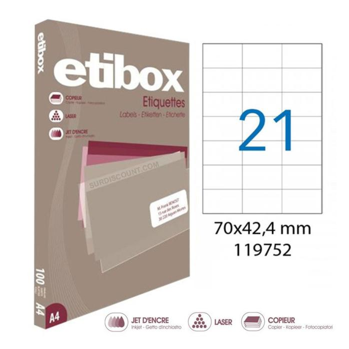 Etikety univerzálne 70x42,4mm Etibox A4 100 hárkov