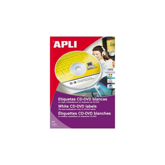 Kruhové etikety so stredovým výrezom určené na označovanie CD alebo DVD. Sú vyrobené s dvoma úchytmi pre ľahšiu manipuláciu pri nalepovaní etikety na CD. Po nalepení ich možno bez problémov odtrhnúť.