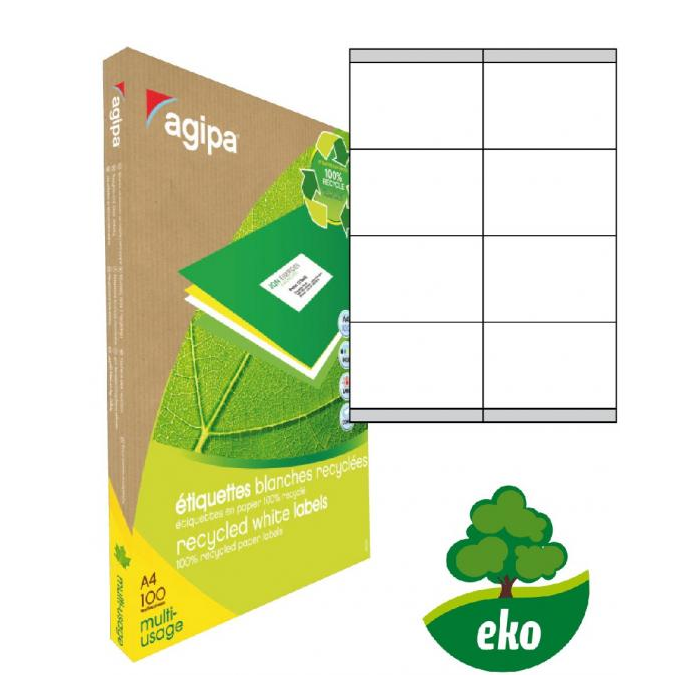 Etikety univerzálne recyklované 105x70mm Agipa A4 100 hárkov