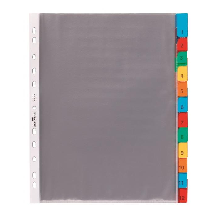 Sada zakladacích obalov DURABLE s rozlišovacími výmennými indexami na rozlíšenie zakladacích obalov, ktoré je potrebné rýchlo vyhľadať. Väčšie balenie 10 sád.