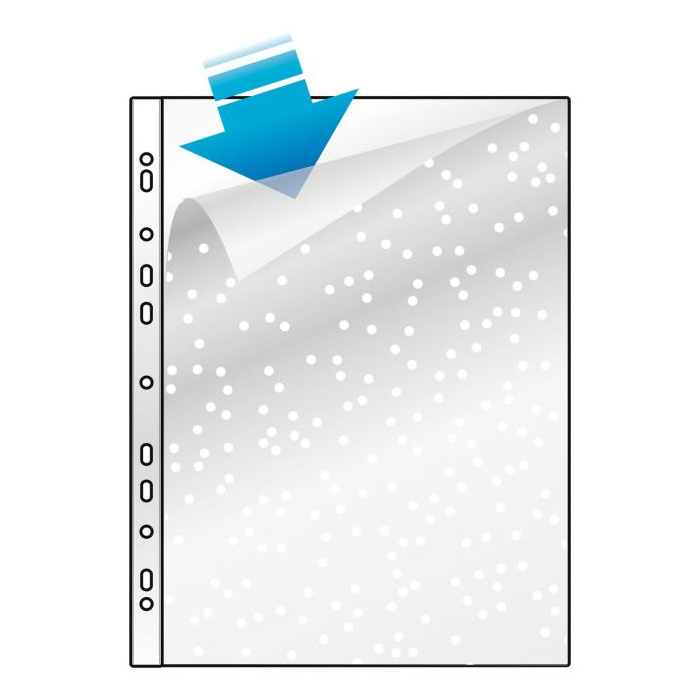 Priehľadný matný obal s eurodierovaním otvorený zhora a z bočnej strany. Formát A4. Hrúbka 50 mic. Balenie 100 ks.