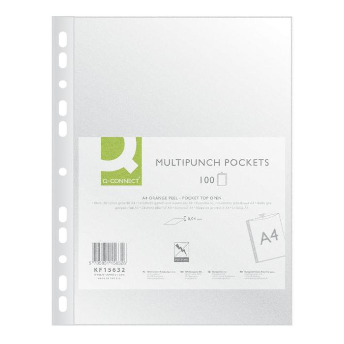 Priehľadný euroobal z polypropylénu. Otvor zhora, eurodierovanie, povrch matný, mierne pórovitý. Formát A4. Balenie 100 ks v sáčku. Väčšie balenie 30 bal. v kartóne.