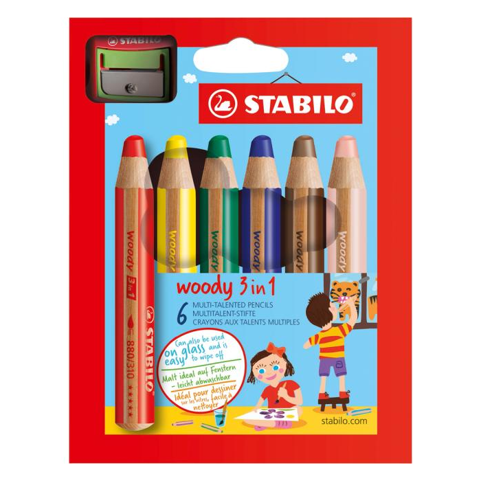 Farbičky STABILO woody 3 in 1 6 ks Sada v kartónovom obale so strúhadlom