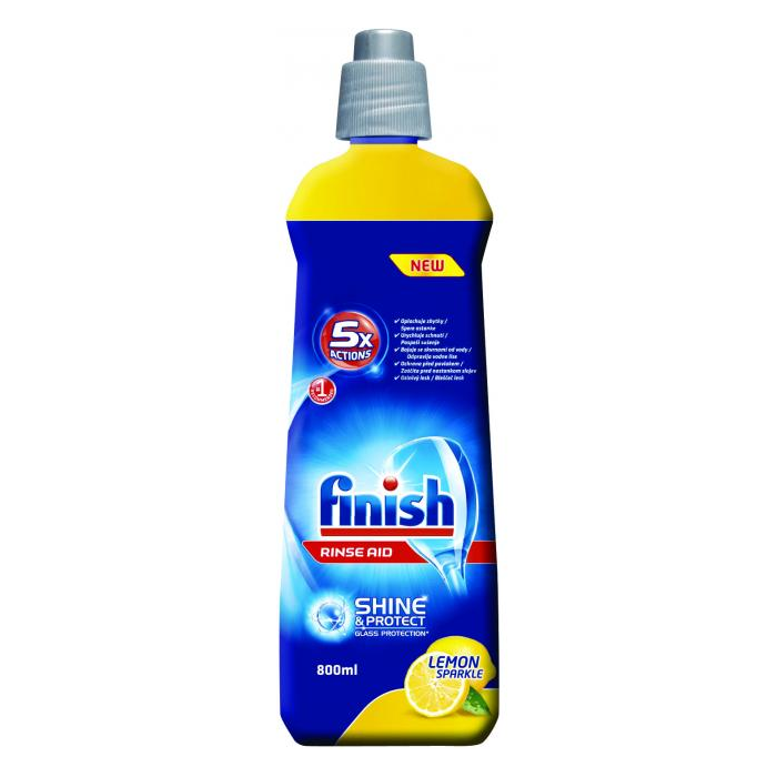 Finish leštidlo do umývačiek riadu dodá riadu žiarivú čistotu a lesk bez škvŕn. Zabraňuje tvorbe kvapiek na skle a riadoch. Urýchľuje proces sušenia.