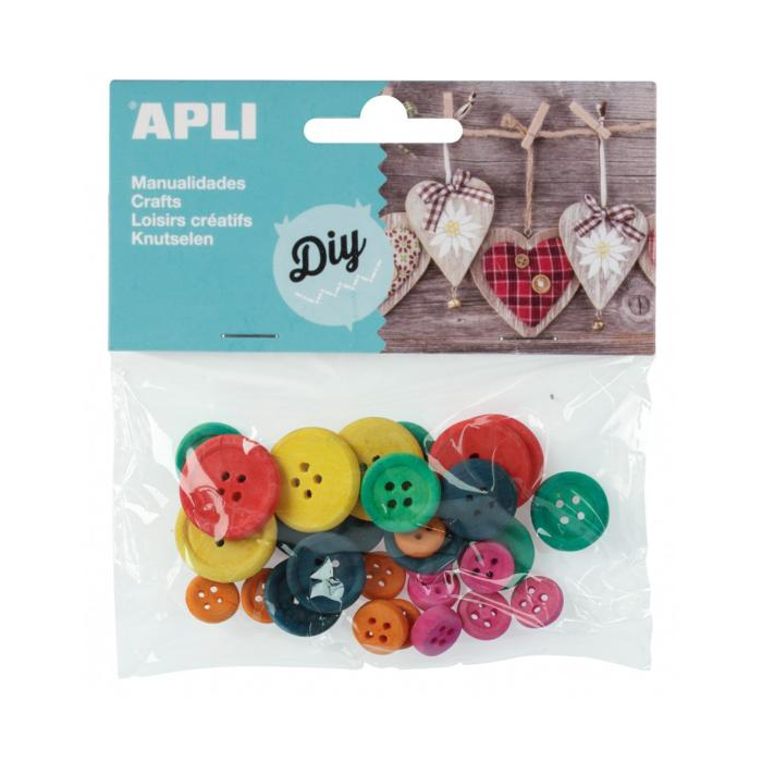 Drevené gombíky v rôznych farbách: zelená, čierna, oranžová, ružová, červená a žltá. Rôzne veľkosti: Ø 10 mm, Ø 15 mm a Ø 20 mm. Každá taška obsahuje 30 gombíkov. Ideálne na šitie, remeslá, scrapbooking, dekorácie, nástenné umenie, zošity alebo akékoľvek iné remeslá.