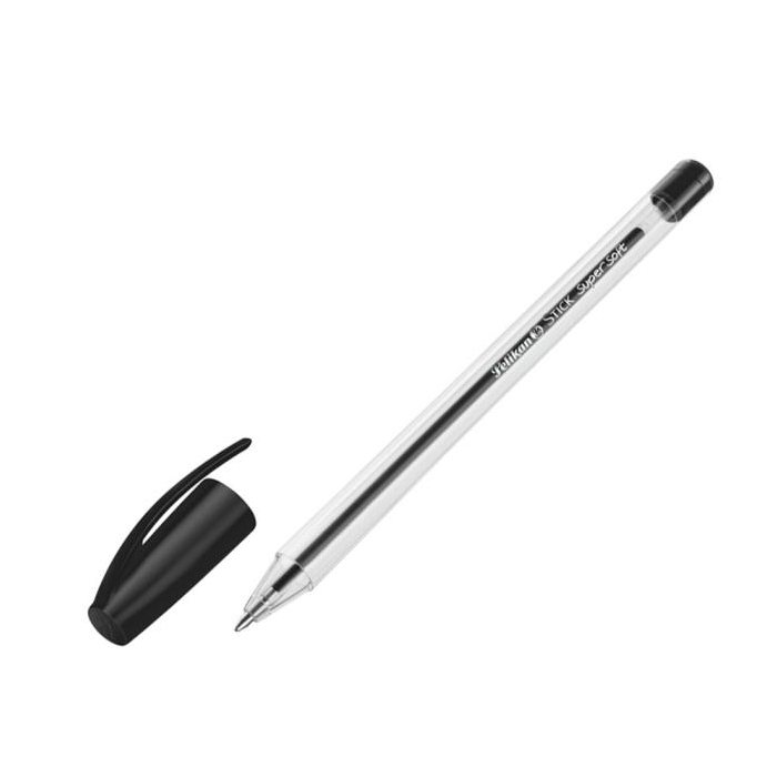 Jednorazové guľôčkové pero s priehľadným telom a viditeľnou farbou atramentu STICK super soft. Guľôčka 1 mm. Balenie v krabičke po 50 kusov. Farba náplne čierna.