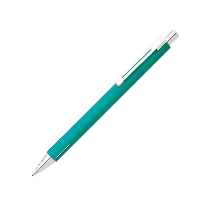 Elegantné guľôčkové pero s jemným ryhovaním. Farebné telo ozvláštnia stieborné doplnky.Modrá náplň veľkoobjemová.