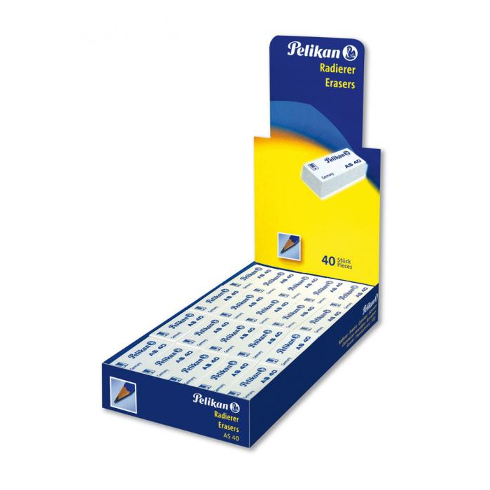 Guma na ceruzku Pelikan AS 40 - vinylová guma na grafitové čiary. Rozmer:33x16x10mm. Balenie 40 ks v krabičke.