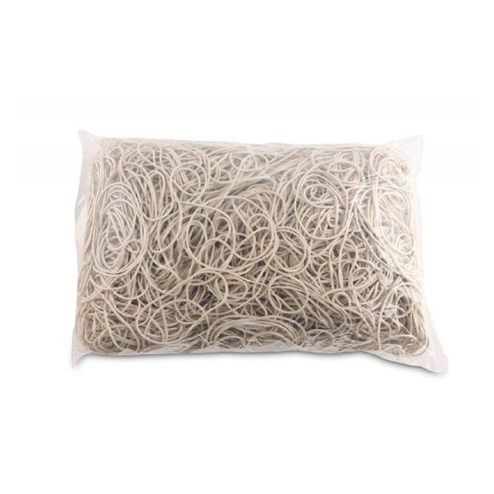Odolné a pružné gumičky vyrobené z materiálu s prímesou gumy (60 %). Rozmery (hrúbka × šírka) 1,5 × 3 mm. Priemer 50 mm. Farba biela.
